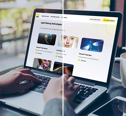 In perfect harmony with your digital lifestyle, SeeCoat Next Blue provides an ideal vision solution by filtering blue light¹ from the sun, artificial lighting, and digital screens, ensuring long-lasting clarity.