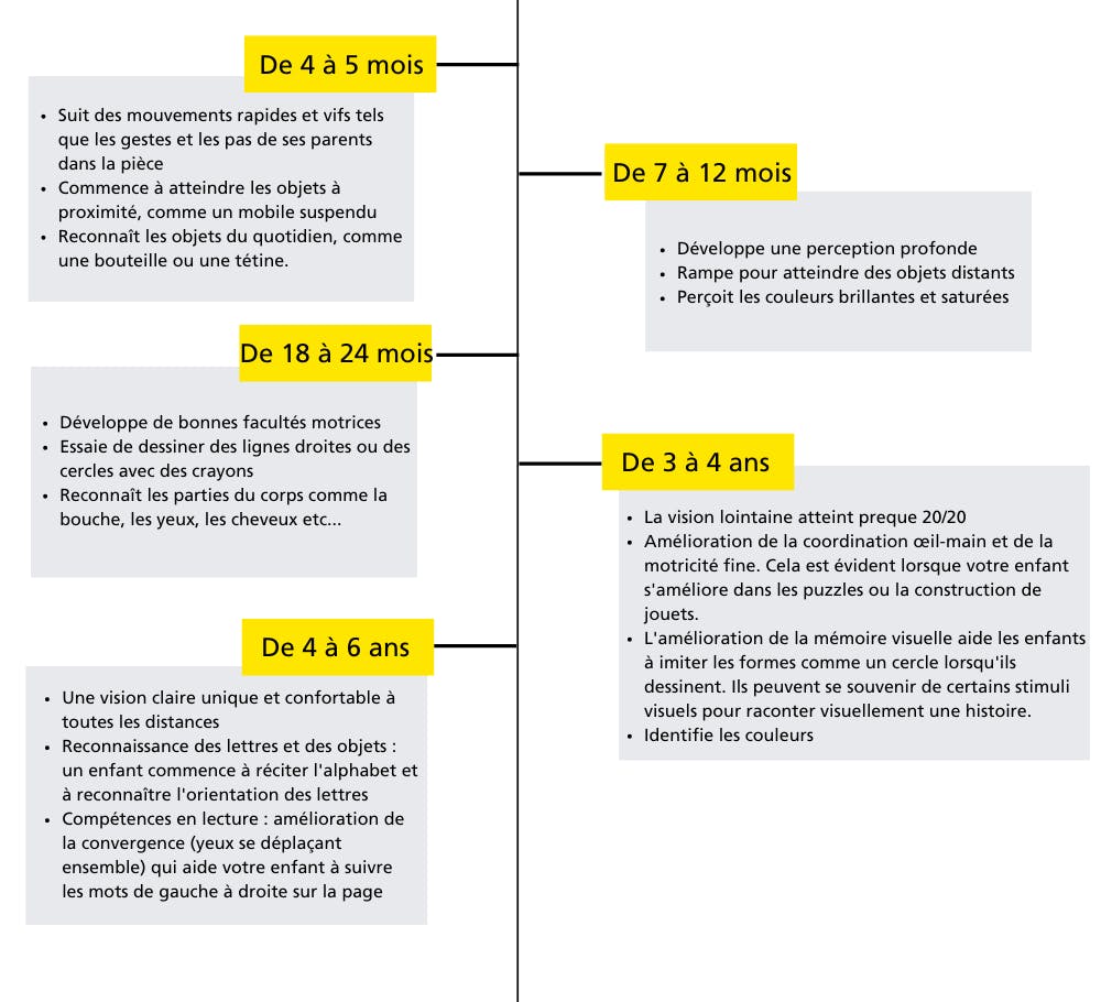 Voici un aperçu de quelques étapes clés dans le développement visuel d’un enfant.