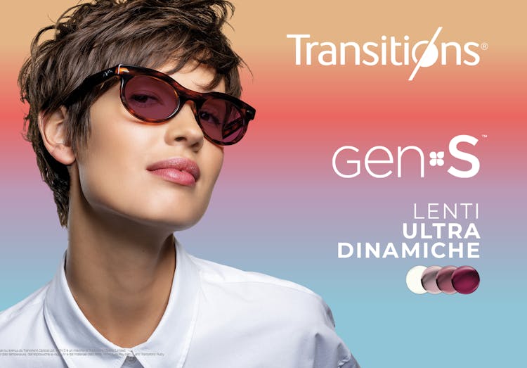 Transitions e il logo Transitions sono marchi registrati di Transitions Optical, Inc. usati su licenza da Transitions Optical Limited. GEN S è un marchio di Transitions Optical Limited. ©2025 Transitions Optical Limited. Le prestazioni fotocromatiche sono influenzate dalla temperatura, dall’esposizione ai raggi UV e dal materiale della lente.