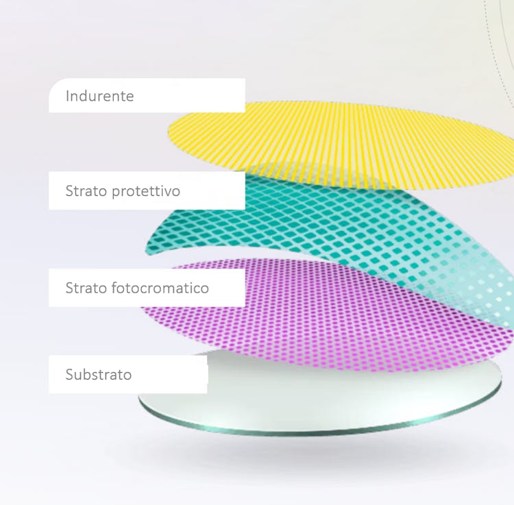 Quando le lenti fotocromatiche sono esposte alla luce, le molecole all'interno della lente iniziano a cambiare struttura. Questa reazione è ciò che provoca lo scurimento. Queste molecole si ricalibrano costantemente e in modo fluido, consentendo alla quantità ottimale di luce di raggiungere i tuoi occhi, sia alla luce naturale che artificiale.