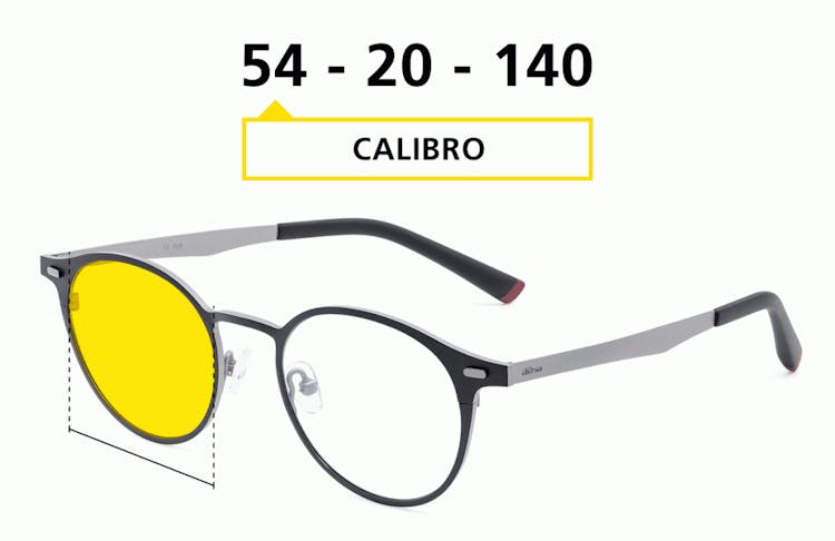 - Calibro: numero a due cifre compreso tra 40 e 62. Corrisponde alla larghezza in millimetri di ciascuna lente.