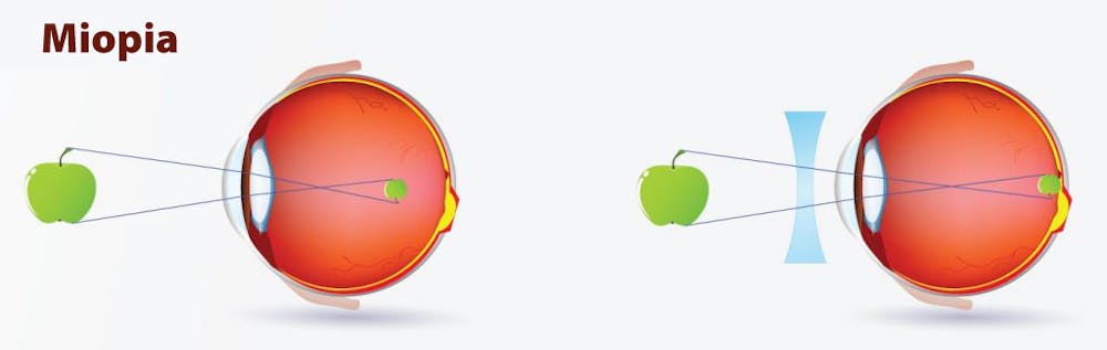 La miopia è causata dall’eccessiva lunghezza del bulbo oculare, in rapporto al potere di rifrazione del cristallino. Ciò fa sì che la messa a fuoco avvenga davanti alla retina. Questo comporta che l’immagine retinica appare sfocata, proprio come una foto scattata da un obiettivo non a fuoco.
