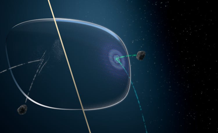宇宙船の防護壁に着想を得て開発されたレンズ保護性能は、日常生活の衝撃に対する強靭性を高め、クリアな視界を保ちます。