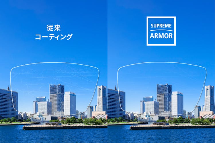 最高品質のメガネレンズを大切に長く使いたい方へ。スプリームアーマーシリーズはキズの付きにくさ、汚れの拭き取りやすさを高いレベルで実現。視界の明るさがいつまでも続きます。