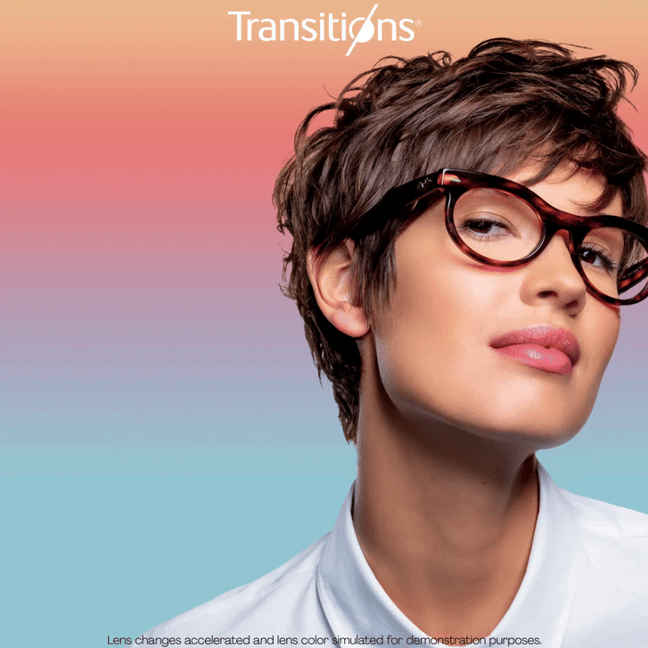 De lichtintelligente Transitions-brillenglazen passen zich naadloos aan veranderende lichtomstandigheden aan. Ze gaan van transparant naar donker wanneer u naar buiten stapt, en terug naar transparant zodra u weer binnenkomt.