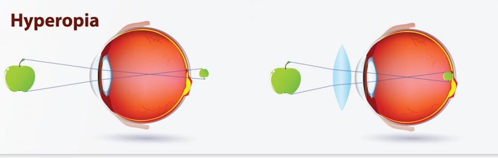 Hypermetropie is wat er gebeurt wanneer het oog te kort is vergeleken met de brekingskracht van de ooglens. Het scherpstellen gebeurt dan achter het netvlies in plaats van er direct op. Daardoor wordt het netvliesbeeld wazig, zoals een foto die genomen wordt wanneer de lens van de camera onscherp is.