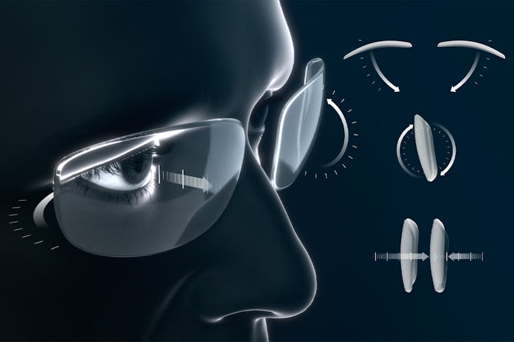 Tehnologia View-Fit ia in considerare parametrii individuali ai purtatorului (unghiul de curbura al ramei, unghiul pantoscopic si distanta vertex) pentru cea mai optimizata combinatie intre ochi, lentile si rama, oferind potentialul maxim al vederii indiferent de rama aleasa.