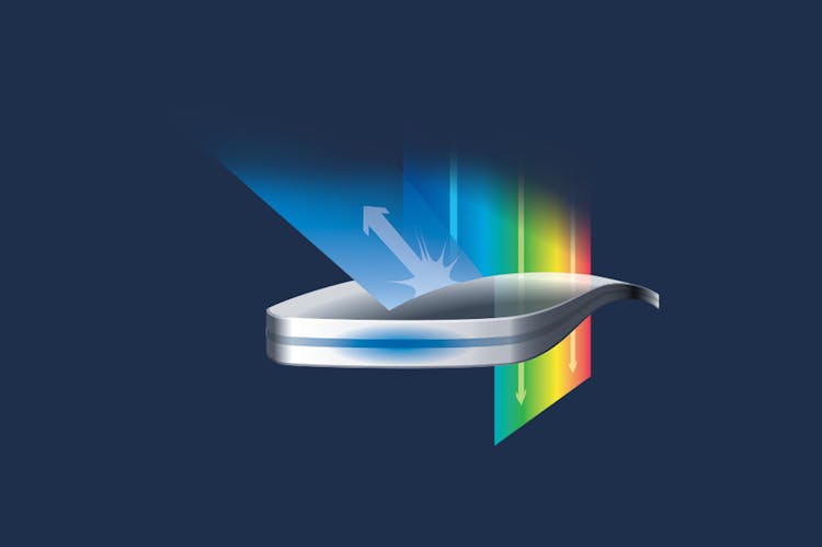 Datorita Tehnologiei de Absorbtie a Luminii Albastre, SeeCoat Blue UV filtreaza lumina albastra¹ mai eficient in timp ce blocheaza razele UV pe ambele suprafete ale lentilei.