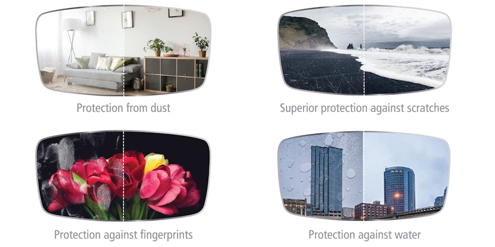 Insa, lentilele care sunt acoperite pe ambele suprafete cu un material transparent si rezistent au o suprafata mai dura, care este mai rezistenta la zgarieturile care pot aparea in utilizarea zilnica - daca va cad pe jos sau le stergeti cu servetele de hartie.