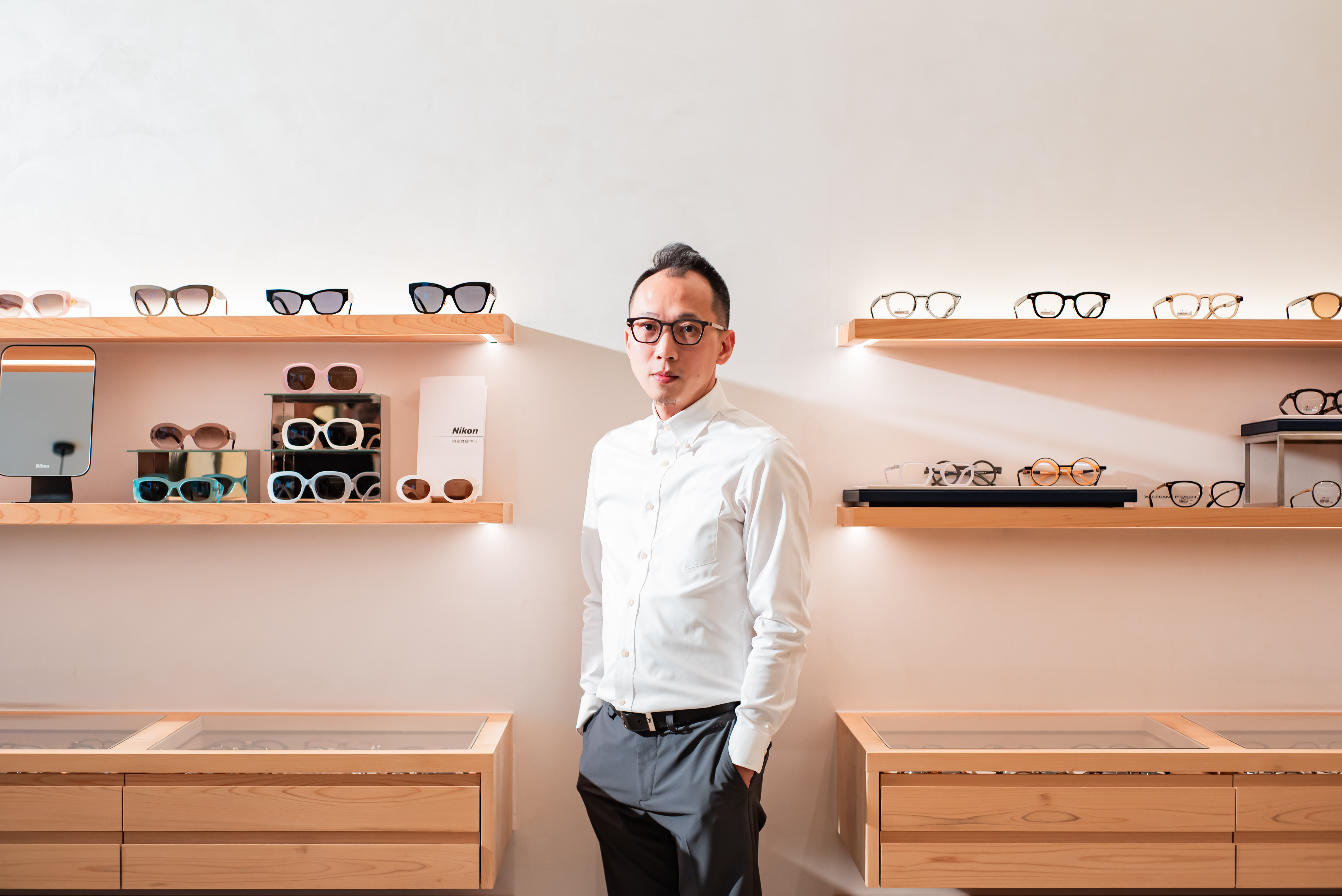 (鼎勳)我一直對『眼睛』這個小小器官充滿好奇,它不僅是感知世界的窗口,也和每個人的生活品質息息相關。當我接觸到視光與眼鏡這個領域時,發現原來透過一副合適的鏡片,能讓人重新看清世界,甚至改變學習與工作的狀態。這種能夠結合專業知識,直接幫助別人的感覺,讓我覺得這是一份很有意義的工作,因此投入其中,一路走到現在。