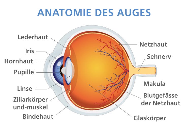 Licht gelangt über die Augenlinse, die der Linse einer Kamera vergleicbar ist, zur Netzhaut. Wenn die Linse gut geformt ist und zur Länge des Auges passt, ergibt dies auf der Netzhaut ein klares Bild.