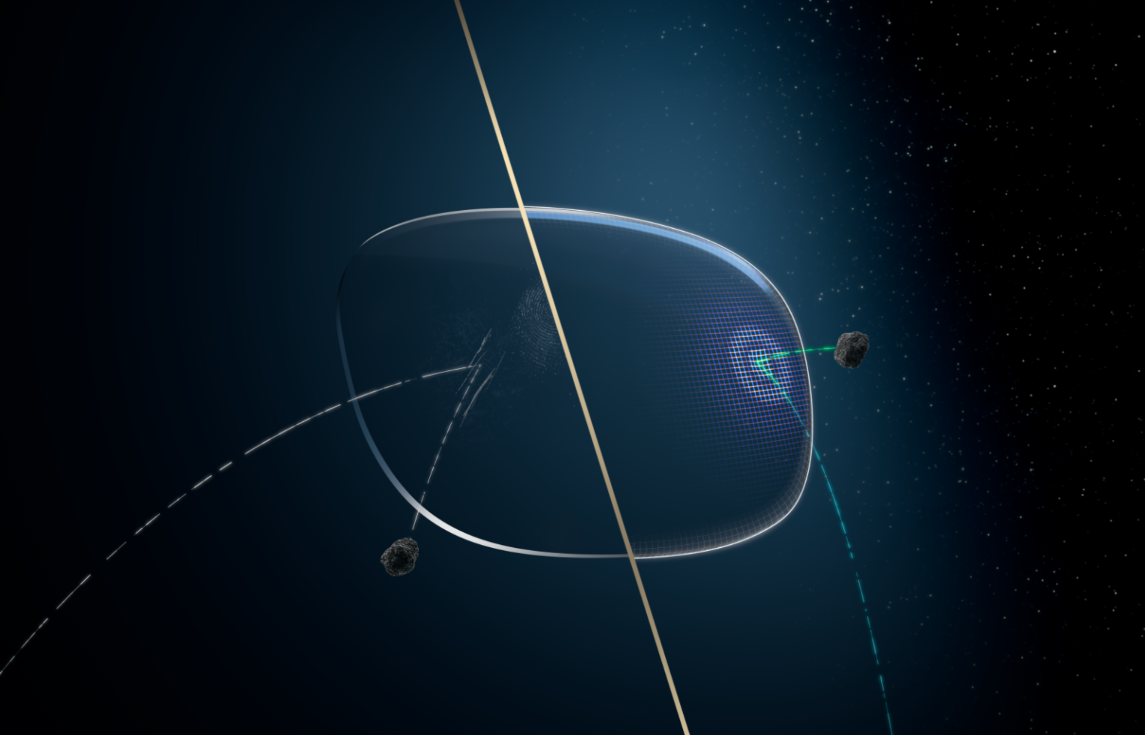 宇宙船の防護壁に着想を得て開発されたレンズ保護性能は、日常生活の衝撃に対する強靭性を高め、クリアな視界を保ちます。