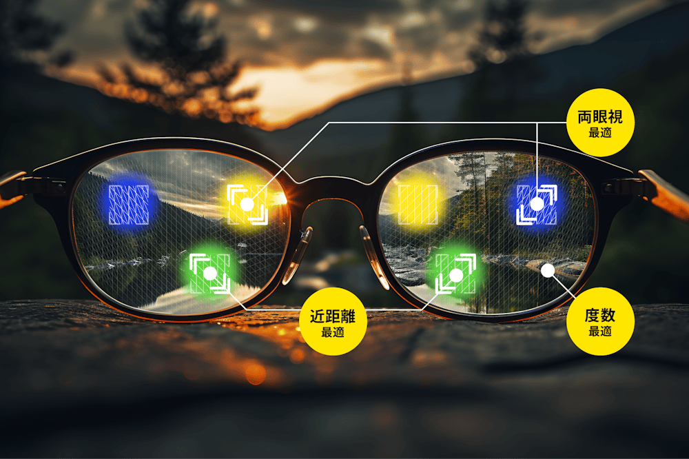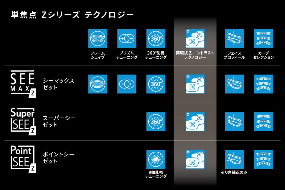 *ニコンレンズウェアの標準非球面単焦点レンズとの比較。Seemax Infinite Z と標準レンズの間で、レンズ周辺部(レンズ中心から10~20mm)における両眼コントラスト透過を社内比較した結果に基づく。改善値は、球面度数+6.00D~-10.00D、円柱度数0.00D~-2.00Dを1.00D刻みで設定した、複数処方における平均値を示す。