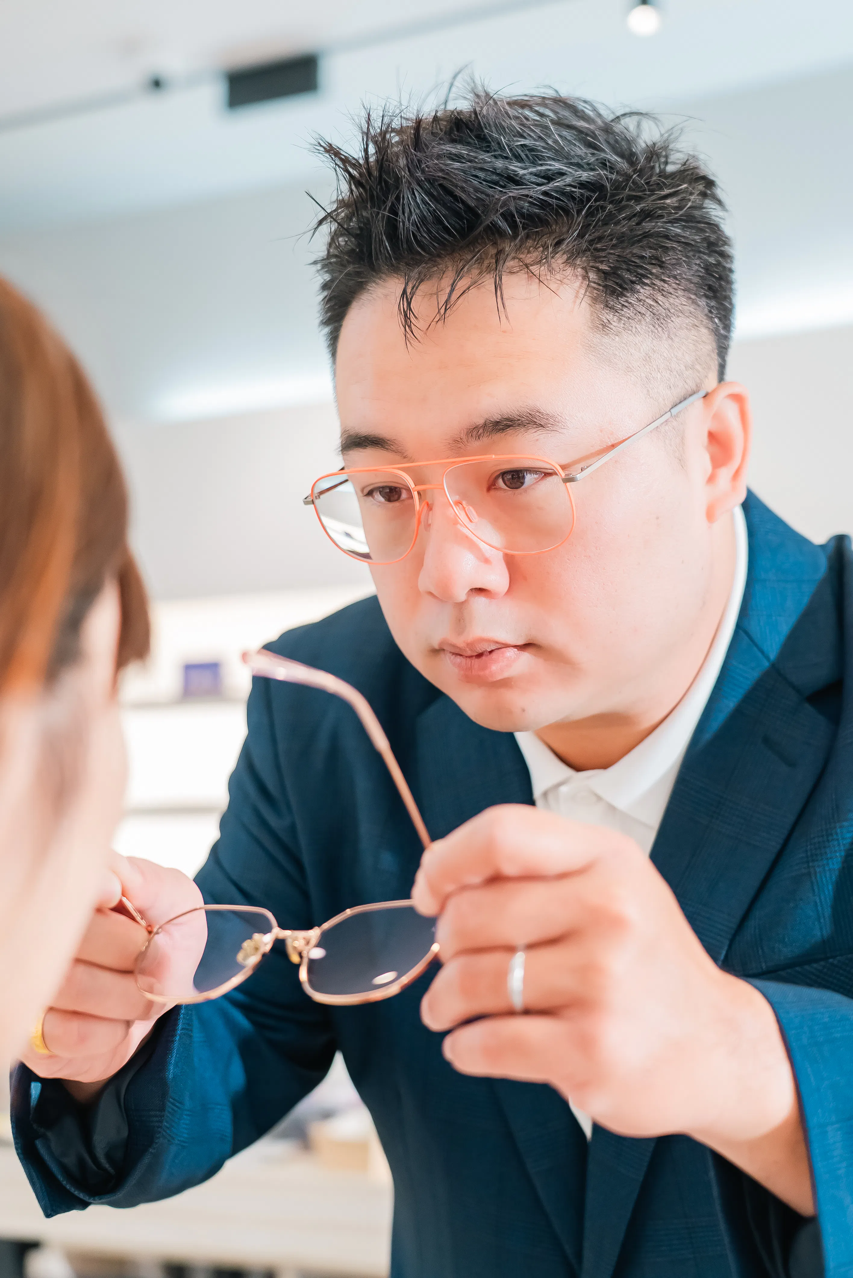 (振東)我的理念很簡單,就是一個客人、一個故事,case by case 去用心處理。除了聽懂他真正的需求,我也會多想一步,把他沒注意到的生活細節考慮進去。既然客人選擇相信我來驗光,我就會把學校所學,加上這些年的經驗,全都用上,給他最適合日常生活的度數。