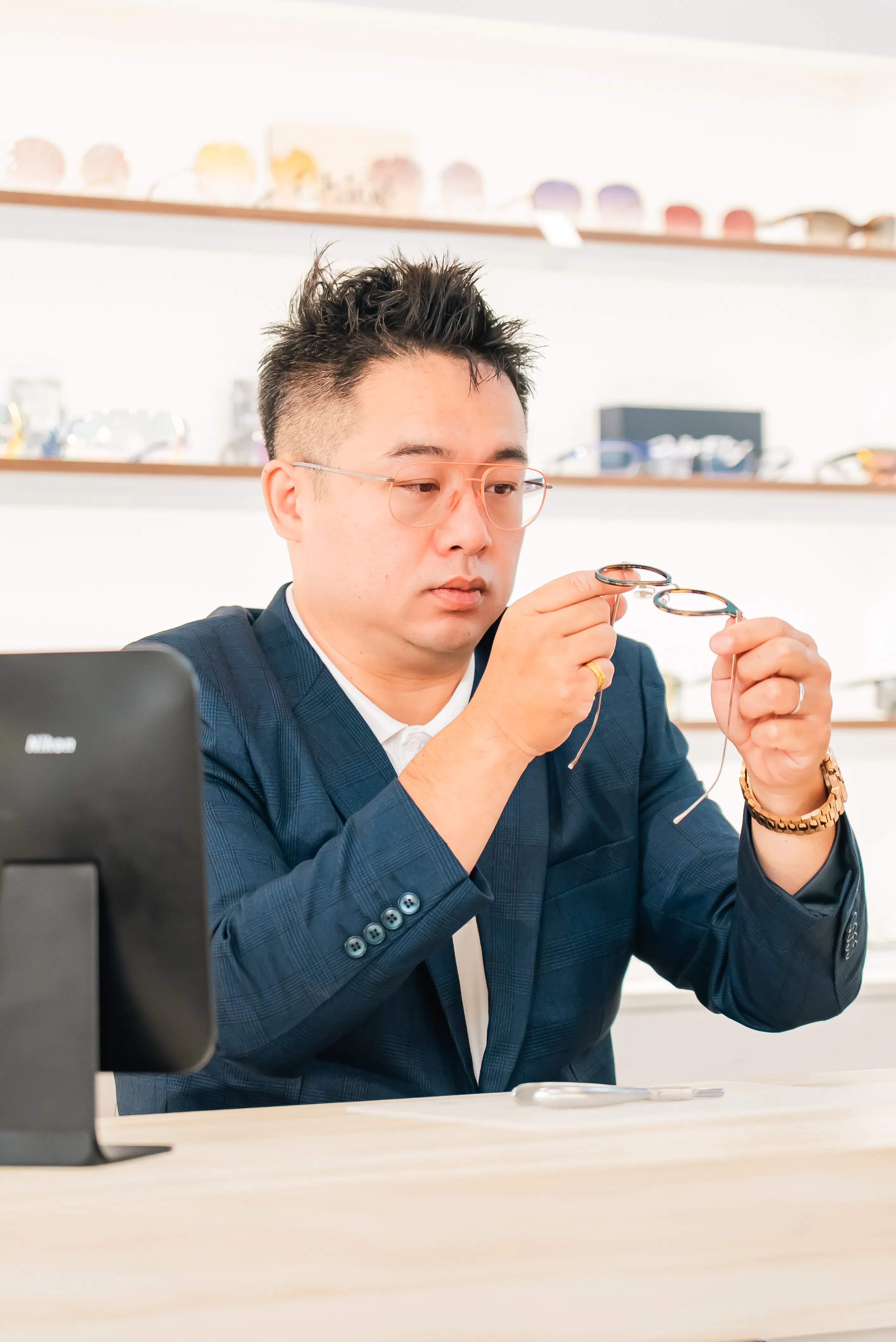 (鼎勳)我一直對『眼睛』這個小小器官充滿好奇,它不僅是感知世界的窗口,也和每個人的生活品質息息相關。當我接觸到視光與眼鏡這個領域時,發現原來透過一副合適的鏡片,能讓人重新看清世界,甚至改變學習與工作的狀態。這種能夠結合專業知識,直接幫助別人的感覺,讓我覺得這是一份很有意義的工作,因此投入其中,一路走到現在。